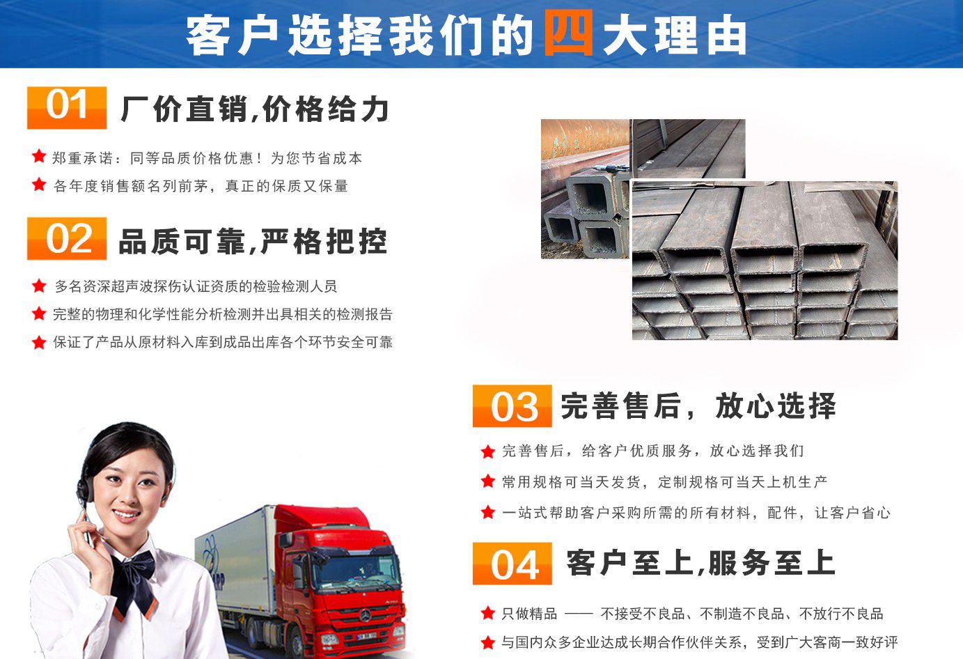 無錫盛灝特鋼有限公司長期銷售Q355B方矩管,鍍鋅方矩管,大口徑方矩管,厚壁方矩管,無縫方矩管等各種方管產品!產品廣泛應用于鋼結構建筑(鋼管混凝土、管樁、管桁架,橋梁、海上作業平臺、港口碼頭建設、電視通訊鐵塔、電力鐵塔等鋼結構管)。壓力管道(石油、天然氣、煤漿等輸送)、機械制輥等領域。  公司自創辦以來,一直堅持“誠信合作,共同發展”的經營理念。  一直以來我們本著“以誠相待,以信為本,互利互惠,共同發展”的長期方針,充分發揮現貨資源優勢為您提供“可靠的產品、過硬的質量、完善的服務”,歡迎廣大新老客戶前來洽談業務。  公司以“至誠至信,雙利雙贏”為根本宗旨,堅持科技興企的發展策略,恪守商規,創新進去,贏得聲譽,贏得了市場,得到了社會各階層的認可。公司以雄厚的實力、可靠的質量、儲存鋼管門類齊全、庫存量大之優勢,本著守法、守信、創新的理念,打造精品,發展鋼管多元化品種,滿足客戶各種需求,以低廉的價格、熱情的服務面向國內外客戶,歡迎鋼管界同仁加盟!我們為客戶提供周到的服務 !  公司為客戶提供以下服務  服務三保: 保證質量、保證時間、保證數量。  服務宗旨: 雄厚的實力、優質的產品、低廉的價格、周到的服務。  批零兼營,一支起定。...